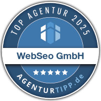 Das Unternehmen „WebSeo GmbH“ wird als eine der Top 100 SEO-Agenturen im Jahr 2025 ausgezeichnet. Detaillierte Infos zur Auszeichnung erhalten Sie hier.
