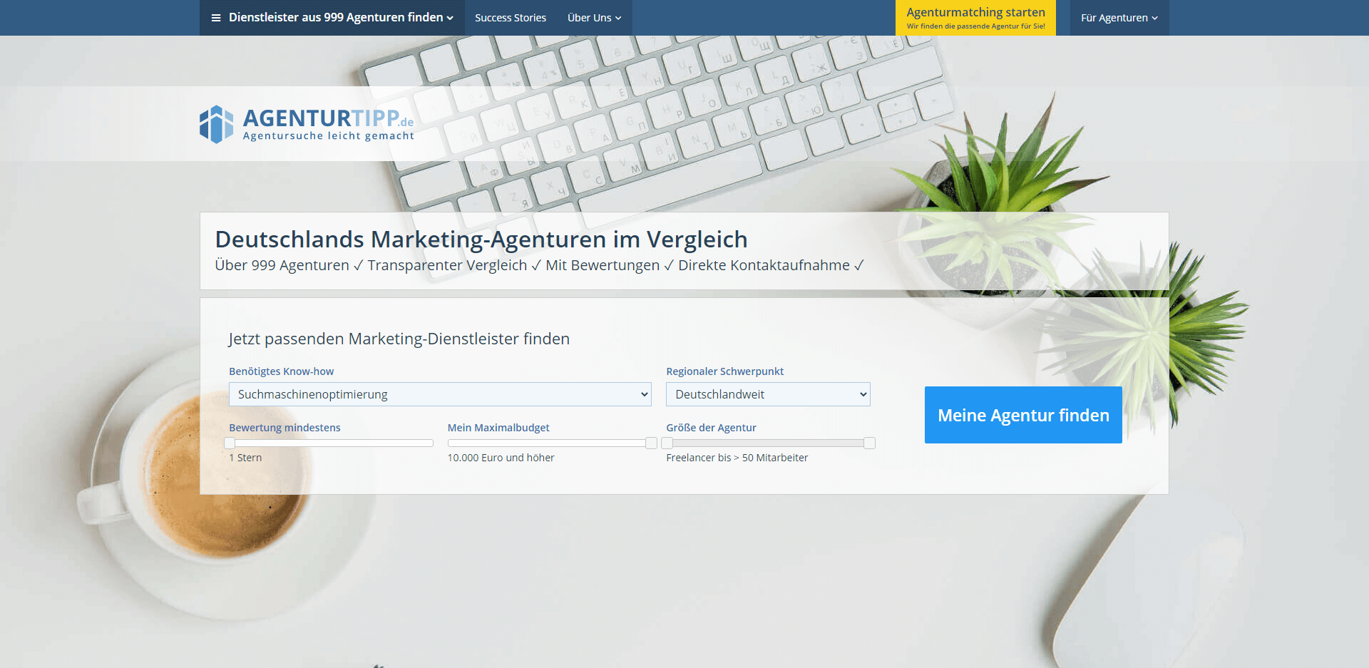 Agenturranking: Agentursieger 2024 15. Januar 2025Das große Vergleichsportal der Agentur-Branche Agenturtipp.de (www.agenturtipp.de) hat auch in diesem Jahr wieder im Rahmen einer Studie Deutschlands SEO-Dienstleister analysiert und ein Agenturranking mit den Top 30 Agenturen (Schwerpunkt Suchmaschinenoptimierung) veröffentlicht. Als PDF herunterladen