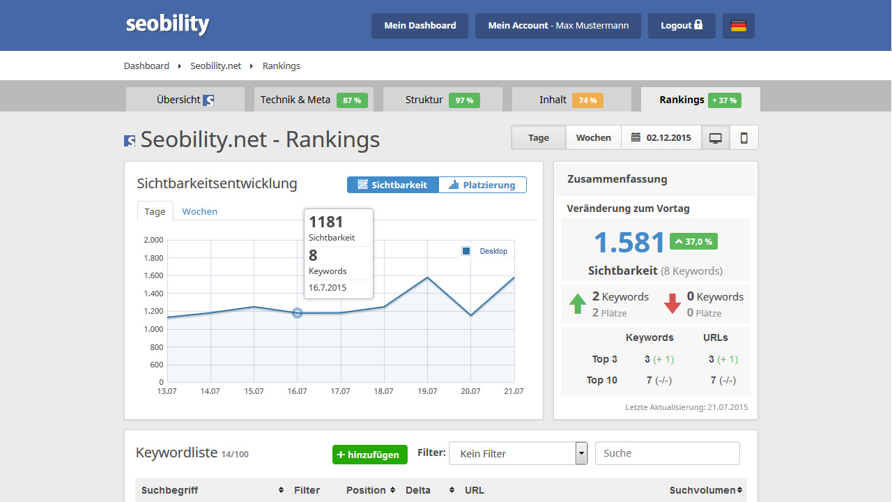 Ändern sich wichtige Indikatoren im Google-Ranking, dann ist es sehr wichtig, schnell darüber informiert zu werden. Nur so können Sie auch zeitnah auf mögliche Veränderungen reagieren und entsprechend gegensteuern.