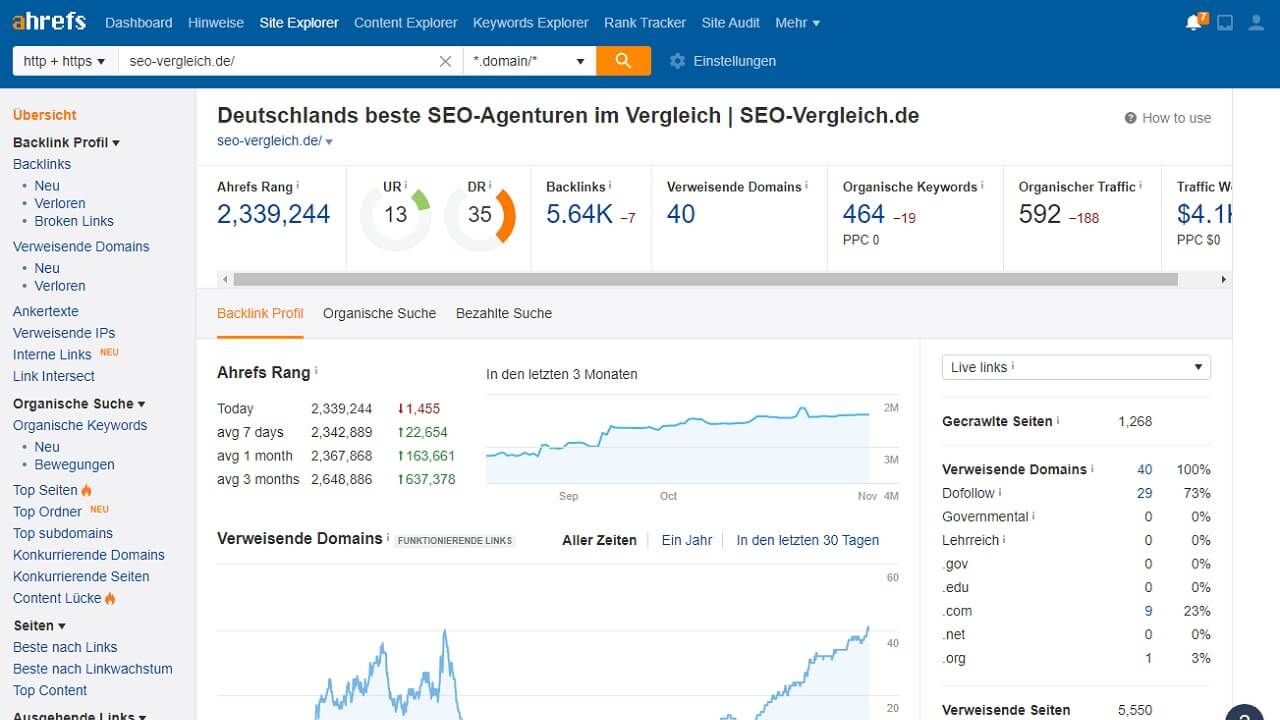 Wie erfolgreich die eigene Backlink-Strategie und die damit verbundenen Maßnahmen sind, zeigt das Linkwachstum. Nimmt die Anzahl der Backlinks bzw. der verweisenden Domains kontinuierlich zu, resultiert das meist auch in einer zunehmenden Relevanz der Website in den Google-Rankings.
